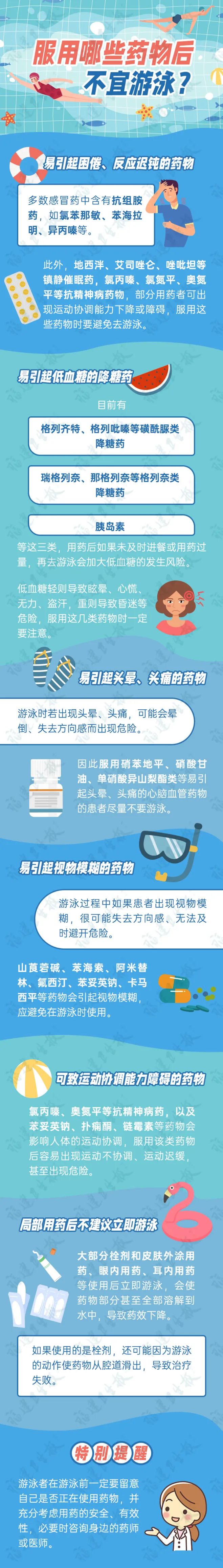 但是重点来了,游泳不是你随时想游就能游的,尤其是平时有服用一些让人困倦、精神不佳、反应迟钝、无力的药物,游泳者可能会因体力不支或反应慢等引发溺水等安全事故。