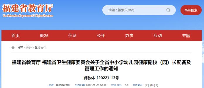 日前,福建省教育厅、福建省卫生健康委员会联合印发《全省中小学幼儿园健康副校(园)长配备及管理工作通知》,要求各地教育、卫健部门要按照《通知》要求,精心组织,积极推进健康副校(园)长选配工作,提高中小学幼儿园卫生健康工作整体水平,切实保障师生身体健康和生命安全。 《通知》明确,中小学幼儿园健康副校(园)长可从当地医疗机构、疾控机构、健康教育机构、社区卫生服务中心、乡镇卫生院等医疗卫生机构中选聘,优先考虑从与学校签订卫生应急、传染病防控协作协议的机构中选聘。教育和卫健部门要加强双向沟通会商,加强辖区内优秀医疗专业人员统筹协调,优化人岗相适,真正把能够发挥作用的医疗专业人员选任到健康副校(园)长岗位。 健康副校(园)长不占学校领导职数和人员编制,任期一般为三年,可连续聘任。健康副校(园)长参加学校的有关工作或活动,应纳入所在单位工作绩效,所在单位给予核算工作量。健康副校(园)长接受学校所在地教育部门管理、卫健部门指导,在中小学校党组织和校长的领导下开展相关工作。健康副校(园)长主要职责有:协助校长督促和指导学校(幼儿园)依照法律法规落实学校卫生工作,参与讨论和制定学校(幼儿园)年度卫生健康管理与健康教育工作计划;协助和指导学校(幼儿园)实施学生健康状况监测和健康教育工作,建立以学校(幼儿园)卫生专业技术人员为主、班主任为辅的卫生辅导员队伍,共同推进学校健康教育,用专业知识影响师生及家长,普及健康知识;帮助学生养成良好的健康行为习惯,促进学生体质健康状况不断改善等。 健康副校(园)长要落实“六个一”,即每月至少一次到学校(幼儿园)现场指导学校卫生工作;每季度至少为全校师生上一次健康教育辅导课;每学期至少参加一次学校(幼儿园)行政例会,研究学校(幼儿园)卫生工作管理、课程设置、健康校园建设、常规工作落实情况等方面工作;每学期召开一次面向教师、学生和家长的座谈会或知识讲座;每学年向学校(幼儿园)提交一次卫生健康工作计划和工作总结;每学年梳理一次学校(幼儿园)卫生工作管理制度,并根据实际情况进行修改和完善。 通知原文见→ http://jyt.fujian.gov.cn/xxgk/zywj/202209/t20220906_5987599.htm |