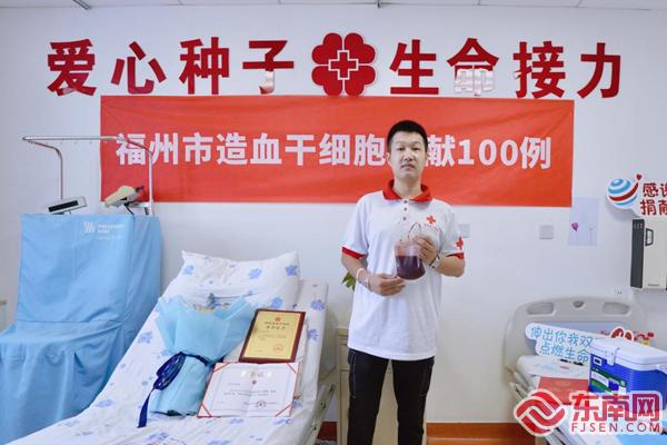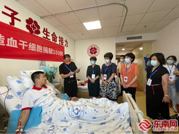 志愿者严旭东在福建省肿瘤医院造血干细胞采集室成功捐献造血干细胞,福州市人大常委会、市红十字会领导前往看望慰问 杨蕊供图 东南网9月8日讯(本网记者 林张清 通讯员 杨蕊)2022年9月8日上午,在第八个“世界骨髓捐献者日”前夕,志愿者严旭东在福建省肿瘤医院造血干细胞采集室成功捐献造血干细胞,成为福州市第100例、福建省第358例、全国第13901例非亲缘造血干细胞捐献者,福州市造血干细胞捐献成功实现百例。 众所周知,造血干细胞移植是目前世界范围内治疗白血病或再生不良性贫血等血液病最有效且唯一的方式。自2004年福州市首例、也是福建省首例造血干细胞捐献以来,至今福州已有百位造血干细胞捐献者为远方的白血病患者带去重生的希望,使无数个家庭免受失去亲人的悲痛。素不相识却因“髓”结缘,虽未谋面却心意相通。数万里征途的“生命接力”,他们让生命再次“落地成花”。 1990年出生的严旭东大学毕业后从事电力设备输变电行业,现为3家公司的董事长,年轻有为的他还担任福建省企联理事会常务副会长,2021年当选鼓楼区人大代表。2009年,他在参与大学无偿献血活动时了解并加入中华骨髓库,成为红十字造血干细胞志愿捐献者。2022年6月份接到福州市红会配型成功的通知后,他毫不犹豫地表示愿意履行承诺,捐献造血干细胞。自从接到要捐献造血干细胞的通知,严旭东推掉了许多应酬,也尽量避免出差,同时戒烟限酒,积极锻炼身体,只为以最好的身体状态实现捐献。
