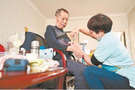 ① 长护险居家护理服务机构晋江邻鹿养老服务有限公司护理员林银花在晋江梅岭街道蔡厝社区的老人家里开展定期居家护理服务(资料照片)。新华社