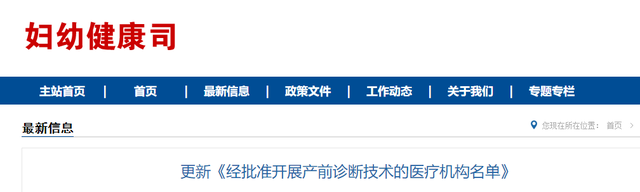 日前 国家卫健委妇幼健康司更新 《经批准开展产前诊断技术的医疗机构名单》