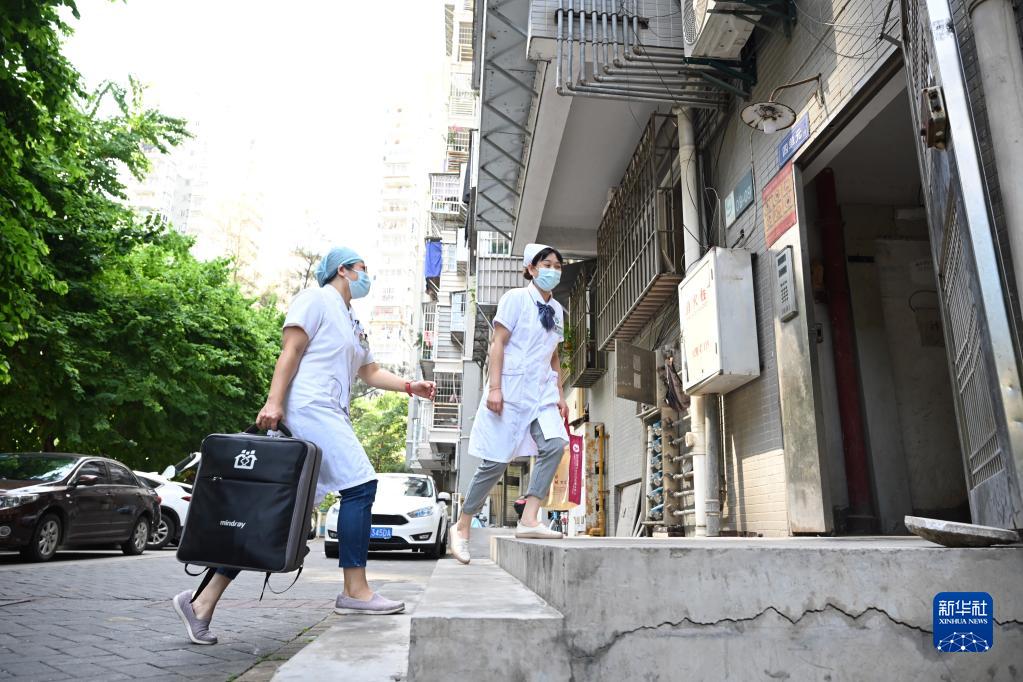 10月9日,福州市台江区瀛洲社区卫生服务中心的家庭医生陈铭(左)、主管护师李凌弦前往签约居民家中提供医疗服务。 2022年3月以来,福建省福州市依托“榕医通”线上平台和各级医疗服务机构,在全市范围内推广“积分制”家庭医生签约服务。居民通过线上完成签约即可享受网络问诊、医护上门、健康管理、预约转诊等服务,签约居民在平台上互动发问或者对医生的服务进行评价可获得相应积分,用来兑换健康检查、中医理疗等服务。此项举措让一些行动不便的老人足不出户就可享受及时的医疗服务。 新华社记者 姜克红 摄
