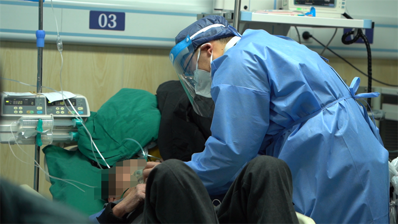 截至12月28日,朱帅俊已在连续工作九日,更是连续值了六天夜班,日夜无差,期间一直都没能回家。他说,“58区亚重症病房开诊当天就收治十个重症患者,最困难的是人手紧张、患者病情重、工作强度极大。不断有同事病倒,又有新同事加入,人员变动很大,多数是紧急上岗,这对新成立科室的工作开展非常不利,好在大家都很团结勤奋,上手也很快。作为重症专业的医生,我有责任守在医院,在病房抢救室和亚重症病房来回折返。