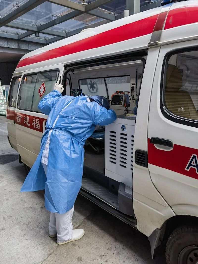 出车的男护士袁圣洁是个“00后”小伙子,在高强度工作下也支撑不住,累得伏在车前。福建省人民医院 供图 而救治病人的医护人员也是一群“病人”。“陈恺、吴丹、林文海、何少华、陈宏杰、游杰在值班期间出现发热、畏冷、心悸等症状,但他们仍坚持完成工作后才休息。像汪文静、林志明、王榕、唐岩、黄双燕、叶鸿志、梁志奇、黄树凌,聂宗辉、付洋,他们高烧一退就返岗,靠的是一种意志力在坚持干。”邵丹说。 面对疫情新形势,医院要求“应收尽收、应治尽治”,同时也给了急诊科很多的支持,从各科调派了医生前来支援,帮助分流急诊病人。