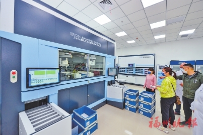 数字一体化玻璃手术室。 3月18日,福建医科大学孟超肝胆医院金山院区就要正式开诊了。金山院区不仅是花园式的医院,更是新一代的智慧医院。近日,记者来到位于仓山区金塘路66号的金山新院,提前探知新院区有哪些便民高科技。 智慧手术室 全省首个玻璃手术室 和西洪路院区5间手术室相比,金山院区手术室更大更多,总面积约5570平方米,共16间手术室,其中5间百级手术室、11间万级手术室,更高科技。 手术室护士长梁秀惠介绍,手术室中有2间防辐射手术室、1间负压手术室、4间数字一体化手术室。其中,一间手术室为全省唯一的数字一体化玻璃手术室。 走进这间手术室,你能一眼发现墙面与众不同,全是玻璃的。 护士长说,传统手术室采用钢板墙面,容易老化,而玻璃手术室采用高强度特殊玻璃预制墙板,表面更易于清洁,更耐侵蚀,更能满足现代化洁净手术室要求,让细菌无所遁形。而根据玻璃具有透明性的特点,可在手术室四周墙面顶端设置七色LED灯带,通过调节灯光颜色,对病人手术部位血管起到显影作用,让医生更容易分辨。此外,加上数字一体化技术,这间手术室更先进。 记者看到,手术室门口有一面显示屏,医生护士可以在这里操作,完成手术的转播示教、查看CT、写护理文书、设置无影灯等。同时,显示屏还能实现视频对话,这样,医生要和病人家属交谈就不必走出手术室了。 智慧药房 让机器人发药补药管药 新院区药房也充满智慧。记者看到,这里全面打造特色智慧药房,引进不少机器人员工。 比如,门诊药房配备了全自动快速发药系统、智能存取药架、双工位机器人补药系统、智能药篮、智能拆零分包机、智能调剂柜、智能麻精药品管理柜;住院药房配备了智能拆零分包机、智能调剂柜、智能麻精药品管理柜;急诊药房配备了智能调剂柜;药学部静脉药物配置中心配备了半自动配药机器人、全自动配药机器人等。 “通过信息化手段,可以实现对药品的有效期进行系统管理,对高危药品,可通过机器配发,提升用药准确率,从而保障用药安全。”药学部主任俞晓玲介绍,智慧药房还引入合理用药信息支持系统,包括前置处方审核系统、处方点评系统、临床药学管理系统、药学咨询交互系统等强大的信息支持功能,做到事前审核、事中监督、事后评估的闭环管理,大大提升了合理用药水平。 此外,在各种机器人的加持下,发药的速度会比过去快上一倍。俞主任表示,患者缴费后,处方系统就会传输信息到自动配药机器,药品通过传送带顺着滑梯一路向下,准确投递到药师工作台,经过复核处方,药品就能交给患者,这样药房窗口不再是“人等药”,而是“药等人”。 智慧物流 让医用物品长出“飞毛腿” 在新院区宽敞的走廊行走时,抬头能看到天花板上有许多轨道,蓝色和红色小箱子沿轨道穿梭。 “我们引进了先进的医院智能化轨道小车物流系统。”设备科副科长赖能平介绍,系统由运行轨道、轨道小车、调度系统等组成,轨道小车载重量15千克、小车容积36升、箱体表面有银离子抗菌涂层,系统内可以同时传输多辆轨道小车。 而这些轨道小车的作用就是完成药品、静脉输液袋、血液样品和实验室样本、病历和文件等的传输,目的是更便捷。举个例子,病房里采集的血样,过去要人工送到检验科,而现在通过智能化轨道小车物流系统很快就能送过去,有效减轻医护人员工作负担,提升医院管理秩序。 据了解,为了避免交叉污染,系统实行洁污分流管理,配置洁车53辆、污车19辆、轨道清洁小车1辆。系统设置48个站点,分布于医院手术室、药房、静配中心、检验科、病理科、输血科、中心供应室、病房等之间传输物品。整个传输过程由系统进行智能控制,实现全天24小时运转,无人员参与。 值得一提的是,为做好紧急物品的传送,新院区还配备了“飞毛腿”——气动物流系统作为轨道小车的补充。该系统借助大楼里的密封管道,通过气压传送医用物品,速度比人工快十几倍以上,能更好降低运送过程中的污染风险,并为患者赢得时间。 智慧病房 病床能感知患者心跳呼吸 病人只要躺在病床上,生命体征监护系统就会通过智能床垫,自动感知人体的心跳、呼吸,以及是否长时间未翻身带来压疮风险,对患者夜间离床等作出风险提示,避免意外事件发生。 新院区正式投用后,这样的“黑科技”场景,将在智慧病房里成为现实。 “目前,智慧病房的各项设备正在紧张调试中。”信息科陈持科长介绍,新院区通过建设移动输液监控、患者生命体征采集、围术期患者追溯管理、环境监控、无线冷链管理、手卫生管理等物联网应用,打造全新智慧病房。 陈持举例,比如移动输液监控系统,当滴速异常时,系统会发出提示;当输液即将结束时,可提醒护士进行配药或准备换药,从而做到从容操作,避免忙中出错。 此外,体温监护系统可对患者提供24小时连续体温监护;手卫生管理系统通过无感知的方式记录医护人员手卫生行为,提高医护人员手卫生意识,降低院感几率;物联网环境传感器能够使病房的温度、湿度、空气质量等环境参数受到全程监控和追溯,从而避免了因温湿度变化、新风不够而影响舒适度。 “智慧病房投用后,将为患者提供更加安全、有效、便捷的住院体验,也提升了医护人员的从业幸福感。”陈持说。 此外,记者了解到,金山院区还建立了智能采血管理系统、省内首家智慧化