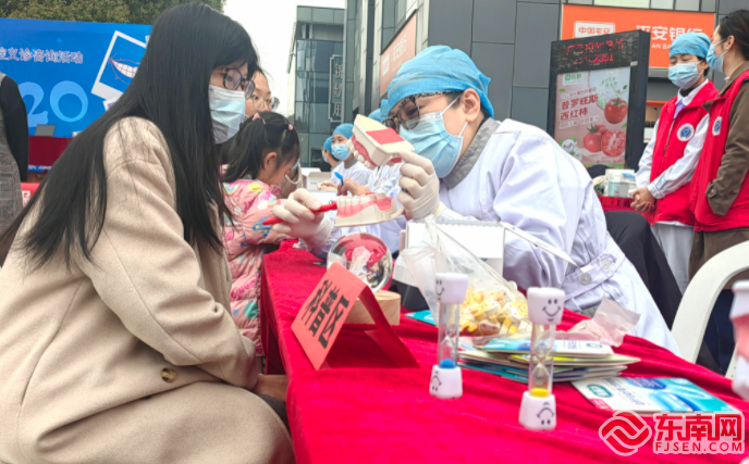 东南网3月19日讯(本网记者 冯川叶)每年的3月20日为“世界口腔健康日”。今天,福建医科大学附属口腔医院的志愿者们来到台江区交通路万科广场,为群众开展义诊宣教活动。 活动现场,福建医科大学附属口腔医院的志愿者们通过医生检查一对一指导,口腔模型、视频科普宣教、表演科普小品等形式,引导市民树立良好的口腔保健意识,教授他们掌握正确的口腔维护方法,从而不断提高全民的口腔健康水平。 “许多人都认为年纪大了,“老掉牙”正常的,这个观点是不对的。改变这一错误的观念,这也是我们今天走进街道、走进社区的目的。”福建医科大学附属口腔医院副院长、闽江科学传播学者黄晓晶教授在接受记者采访时表示,其实只要大家从现在做起,注重口腔保健,掌握正确有效的口腔清洁方法,定期检查,保持完整牙列是没有问题的。根据第四次全国口腔健康流行病学抽样调查数据显示,我国65-74岁老人平均存留牙数仅为22.5颗,这其中还包括了松动、残损等病牙的情况,由此可见,我国老年人的牙齿健康水平仍然有待提高。 记者了解到,在世界口腔健康日前后,福建医科大学附属口腔医院开展多场形式各异的科普宣传活动。该院以“牙天使”志愿者服务队为主体,“微笑快车”品牌项目为载体,常态化、制度化开展口腔科普宣教、筛查干预、互动体验、爱心助学等口腔公益志愿活动,旨在通过系列项目活动普及全生命周期先进口腔健康理念。近五年,该院组织开展各类院内外志愿服务活动近200次,参加志愿活动的员工一千多人次,志愿服务总时长4000余小时,服务群众2万余人,线上受益群众50余万人。口腔科普的公益志愿项目也多次获得全国的银奖、铜奖。