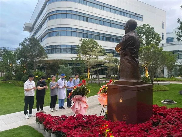 现场,大家向吴老铜像致敬,并依次敬献手中鲜花,每一捧花束都代表着大家对吴孟超院士敬佩仰慕之情和传承吴老遗志、发展医学事业的坚定信念。