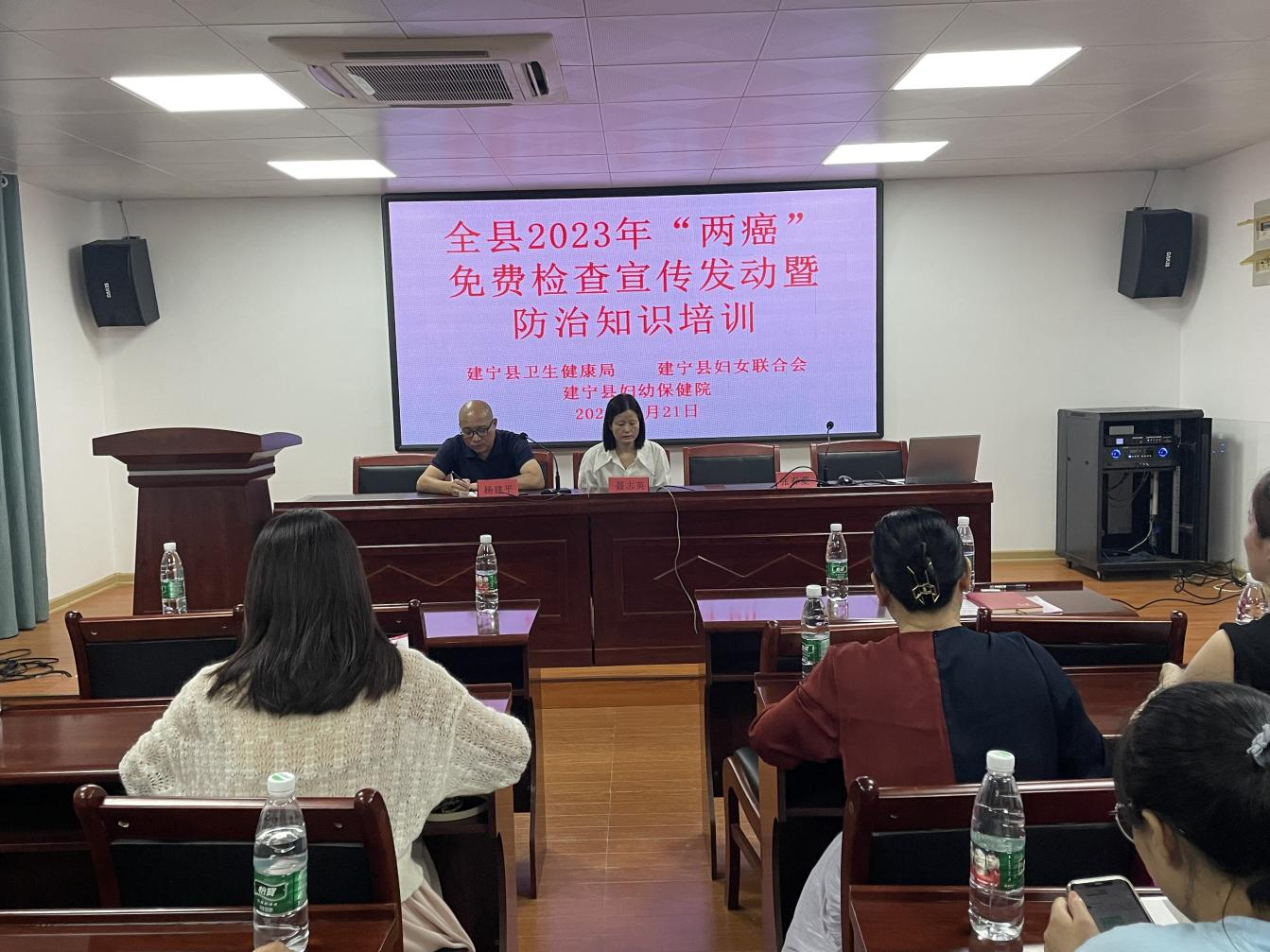 福建卫生健康新闻网讯(通讯员 杨建平 文/图)为提高建宁县城乡居民妇女健康水平,建立维护妇女健康的长效机制,提高城乡居民妇女宫颈癌和乳腺癌的早诊早治率,降低妇女“两癌”死亡率,6月21日,建宁县卫健局、县妇联和妇幼保健院联合召开2023年“两癌”免费检查暨宣传发动培训会,对与会人员进行乳腺癌和宫颈癌防治知识专题培训。