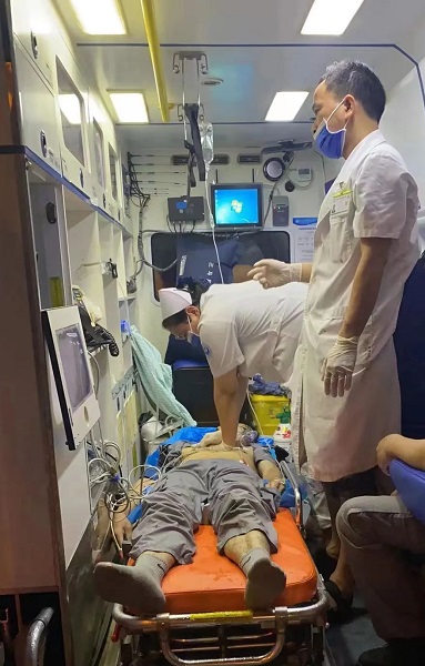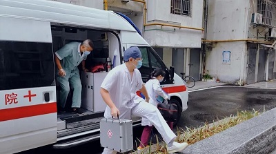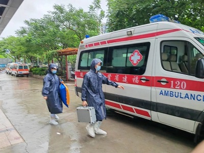 急救人员24小时不停歇,迎着风雨迅速出诊。