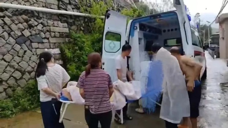 东田镇卫生院急诊科冒着强风雨,紧急转送病人至南安市医院。该病人脑干出血后长期卧床,在家需要定时吸痰,台风导致停电,为保证患者生命安全,东田卫生院120紧急出车将其转诊上级医院。