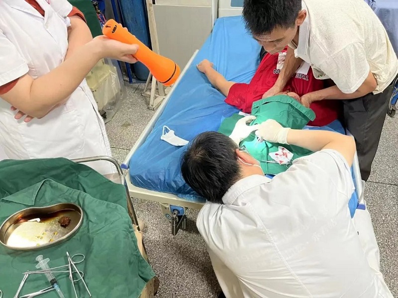 ▲经济开发区企业员工家属因台风被玻璃扎伤,医生为患者清创缝合 南安市卫健系统 7月28日中午,乐峰镇飞云村一村民搬东西被砸到。乐峰镇卫生院医疗救治队伍紧急护送病人到光前医院救治。一路上都是被风吹倒的大树,乐峰镇、村干部、志愿者、医生合力清理路障,打通生命通道。
