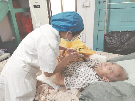 江田卫生院护士为患者提供居家安宁服务。