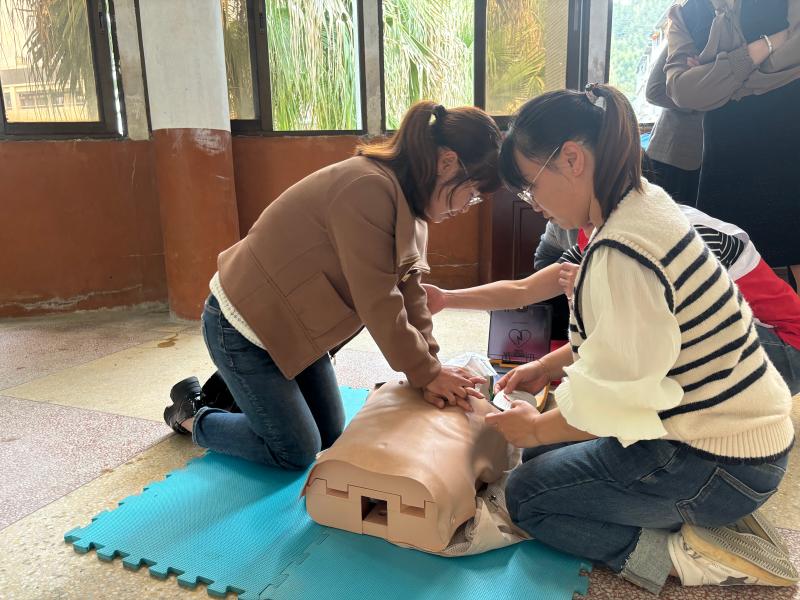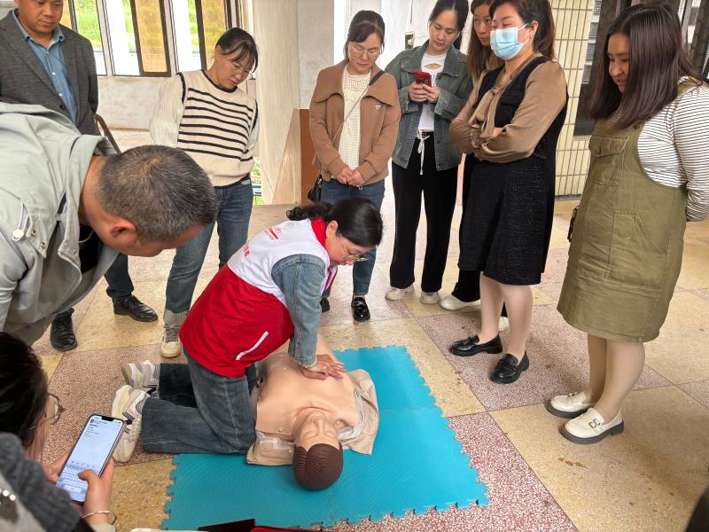 培训采取理论+实操相结合的方式进行,先由培训老师讲解应急救护知识和技能,内容包括红十字运动、心肺复苏术、气道异物梗阻现场急救、自动体外除颤器(AED)的使用方法、创伤救护等,随后学员们分组进行实操练习及实操考核,通过“学+练+考”的形式,帮助学员们尽快掌握急救知识。