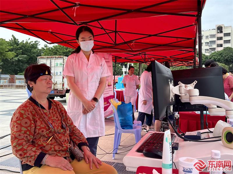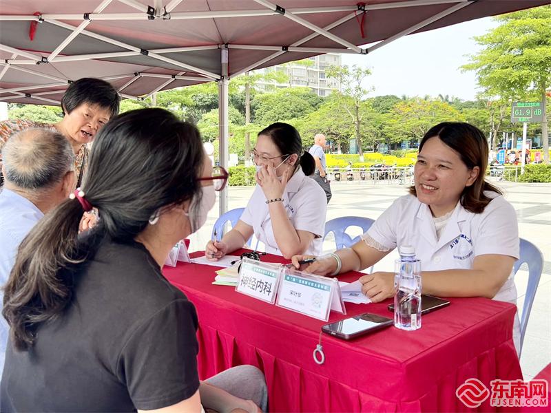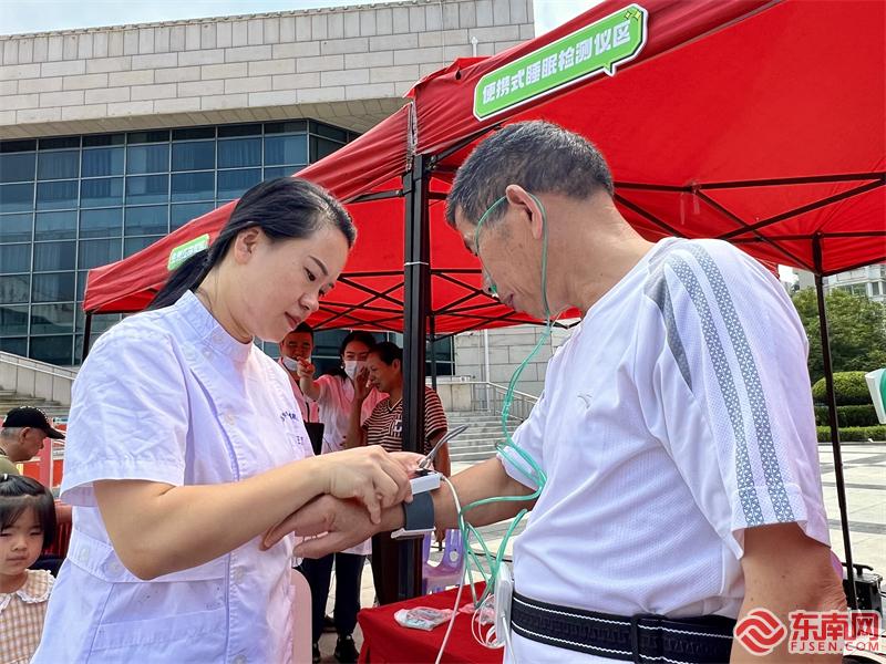 医务人员为居民提供健康咨询服务(东南网记者 李霖 摄) 东南网5月19日讯(记者 李霖)养生“干货”与趣味游戏结合,检查理疗与健康好礼兼具……5月18日上午,“特‘困’生唤醒计划”暨“携手‘近邻健康’ 共建‘心灵幸福集美’”专家进社区大型活动在厦门集美杏林文体中心举办。医务人员为患者解决睡眠障碍、提升睡眠质量,丰富的项目让居民在寓教于乐中重视睡眠健康、拥抱健康生活。 活动现场分为打卡区、科普区、义诊区、体验区、互动区五个区域。“要培养孩子的自信心,应当经常表扬孩子聪明?”“焦虑不安等情绪有害无利?”科普区展板上,一系列心理健康问答题吸引不少居民围观,学习心理知识,分享生活经历,踊跃参与答题,乐赢好礼。 当天,厦门医学院附属第二医院十余名来自心血管内科、呼吸内科、神经内科等科室专家联合杏林街道社区卫生服务中心医务人员,开展多学科联合义诊,为到场居民提供专业的健康咨询、诊治指导,将优质医疗资源送到群众身边。 “请静静聆听,放飞您的想象,放松心灵……”杏林街道居民骆女士是一个三岁孩子的妈妈,长期入睡困难让她身心俱疲。在厦门医学院附属第二医院心理治疗师朱丽君的指导下,骆女士体验了脑电生物反馈治疗仪。朱丽君告诉记者,根据仪器对患者肌电值的监测,开展有针对性的训练和治疗,可以帮助失眠患者寻找睡眠状态。 在体验区,除了测血压、测血糖之外,医务人员还将专业仪器带到了活动现场,为感兴趣的居民提供人体成分分析检测、睡眠监测;提供耳穴贴治疗体验,详细讲解耳穴贴压后的注意事项。