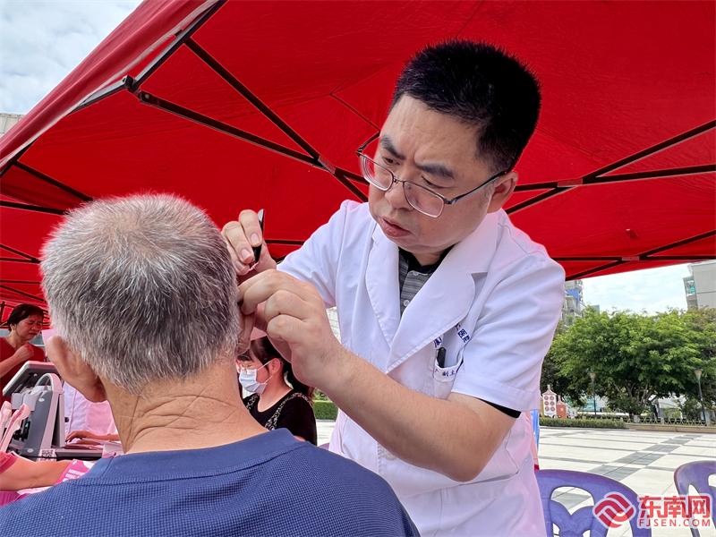 医务人员为居民贴耳穴贴(东南网记者 李霖 摄)
