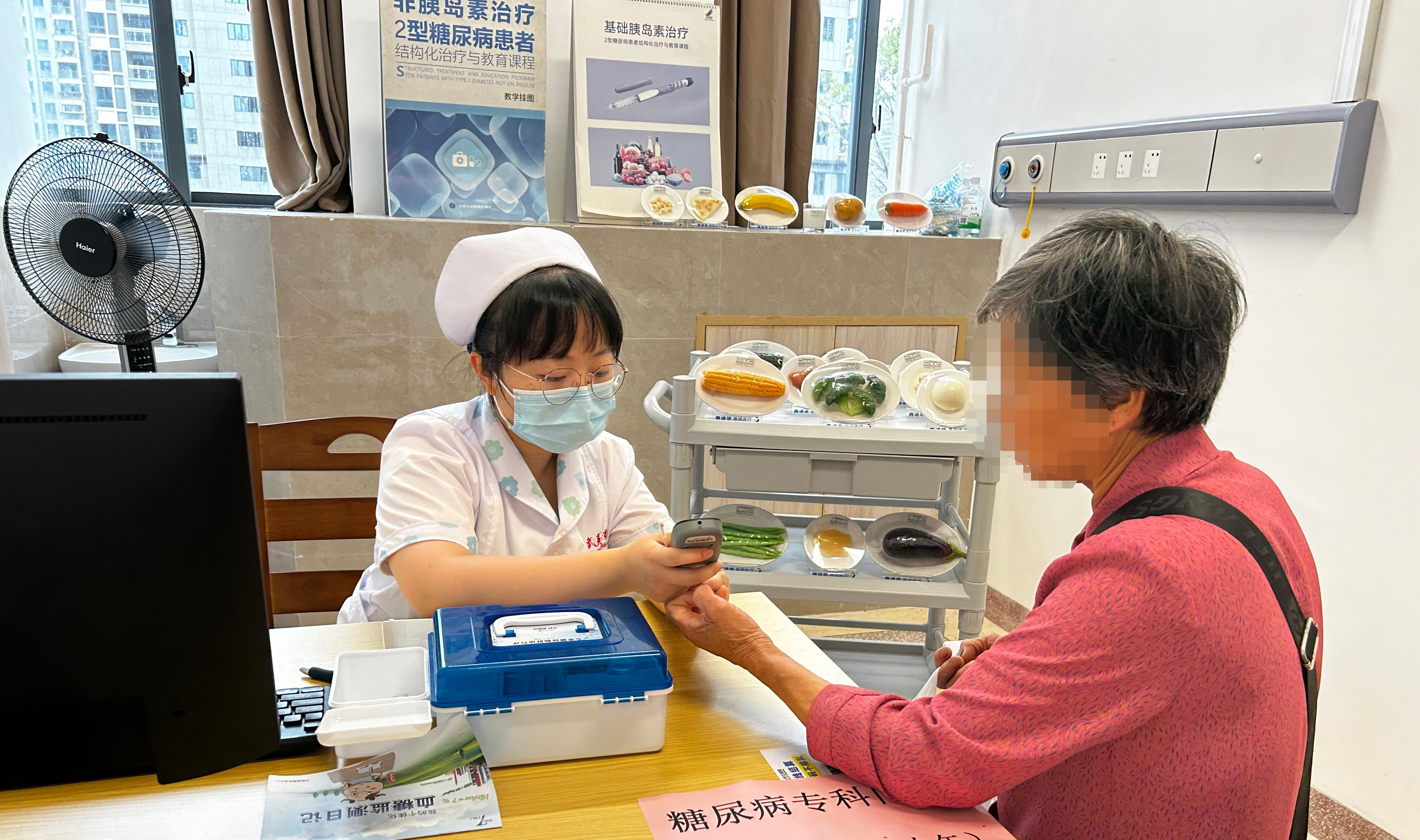 “糖尿病专科门诊”是武夷山市立医院针对糖尿病患者,今年6月新增设的特殊诊室。糖尿病作为严重危害群众健康的慢性病之一,据不完全统计武夷山市糖尿病患者已有2万余人。“糖尿病的治疗尤其是血糖控制是一个长期的过程,如果不及早进行干预,中风、心血管疾病、肾尿毒症等并发症出现后,将会加重家庭和社会的负担。”张敏说,医生门诊偏向于医疗救治,糖尿病护理门诊更侧重于患者的全过程管理。 新增设的门诊,如何配备专业的医护人员?武夷山公立总医院护理部副主任胡晓翠介绍,医院根据门诊护理需求,选派专科护士到省内外三级医院进行二至六个月的专科实践学习。选派的护士学历、技术职称、工作经验等方面都有明确要求,取得专科学习证书后择优进行开设门诊,确保护理专科门诊的质量与安全。