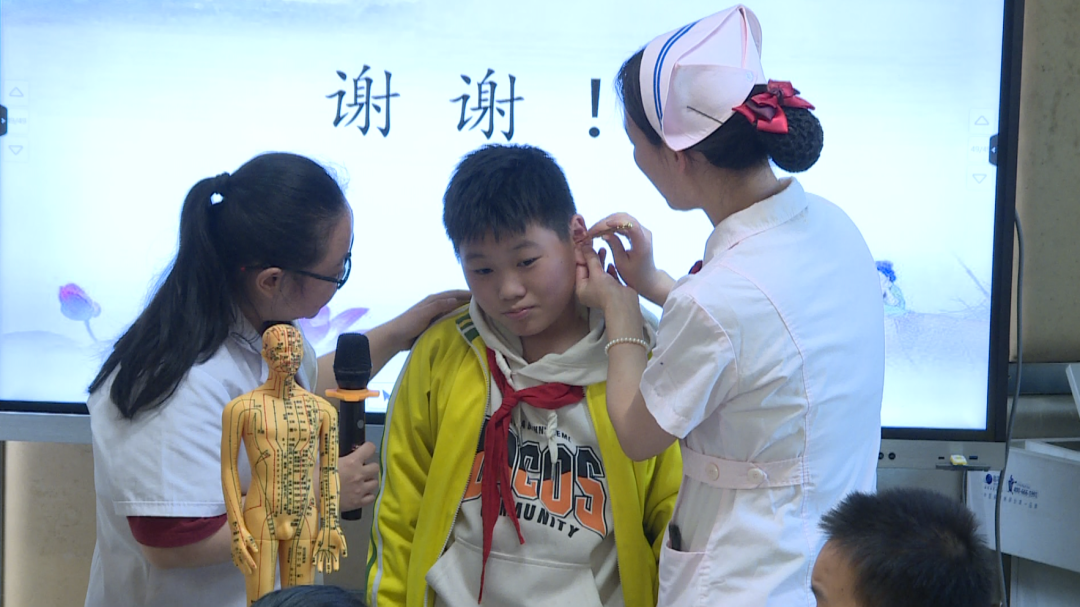 课堂上,医生吴俊峰向同学们科普了中医健康文化知识,讲解了中医的历史文化。随后护士长现场给学生们讲解中医适宜技术,并演示拔罐、针灸穴位、艾灸、耳穴埋豆等技术,课后还带领学生们跳八段锦,领略中医文化。 “此次活动让我知道了很多中医历史文化,还了解到中医刮痧、针灸、拔罐等技术。”民主小学学生梨芷倩说。