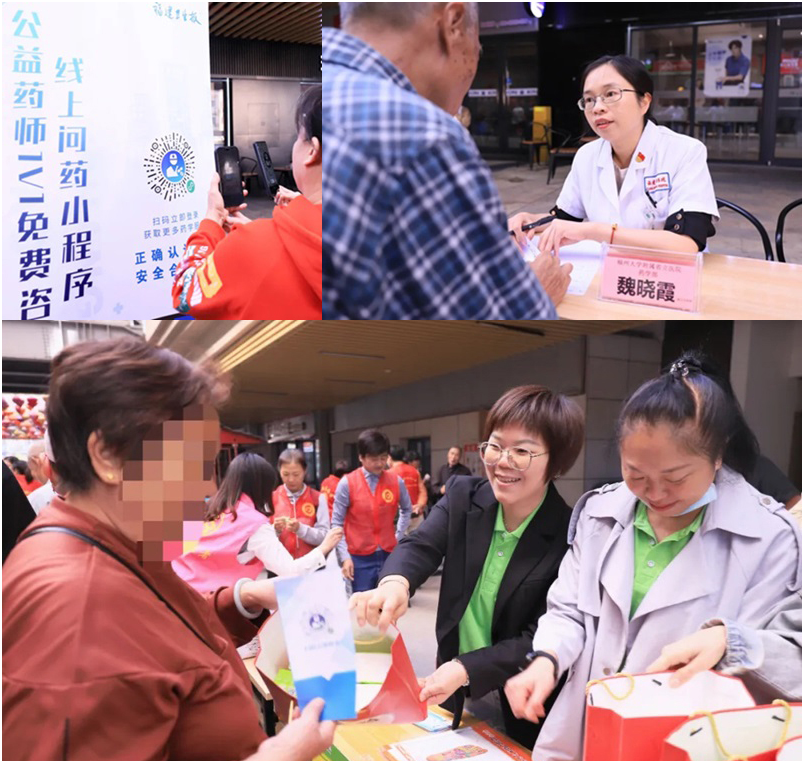 福建医科大学附属第一医院皮肤科副主任医师计雄飞和耳鼻咽喉头颈外科副主任医师顾晰的义诊桌前也排起了长队,两位专家耐心地解答了现场老人皮肤、听力等方面问题。 本次活动,也是福建卫生报“线上问药公益健康行”品牌活动的第5站。活动现场,以福建卫生报“线上问药”小程序及药事服务为主设计的一系列互动健康小福利也很受居民欢迎。老人们纷纷拿起手机扫码,领取药学科普小手册,随后或投壶或玩膳食宝塔贴贴乐,领取小礼物。 福州大学附属省立医院药学部副主任药师魏晓霞为现场居民提供家庭药箱整理、用药指导及安全用药科普。