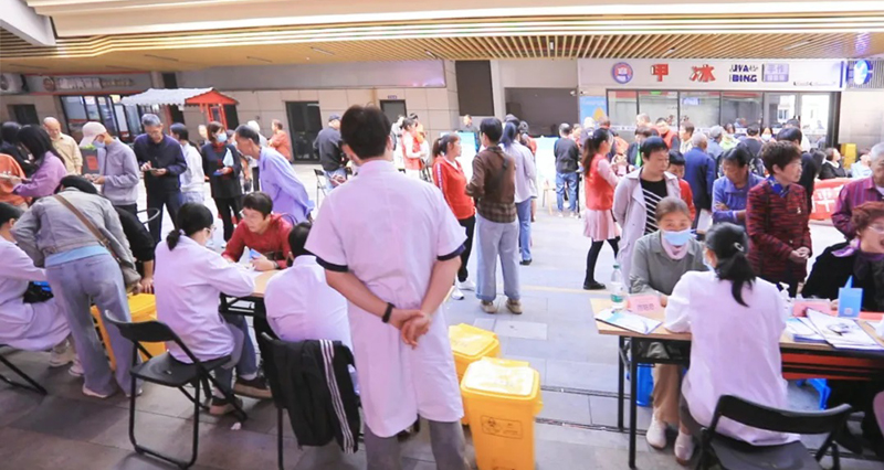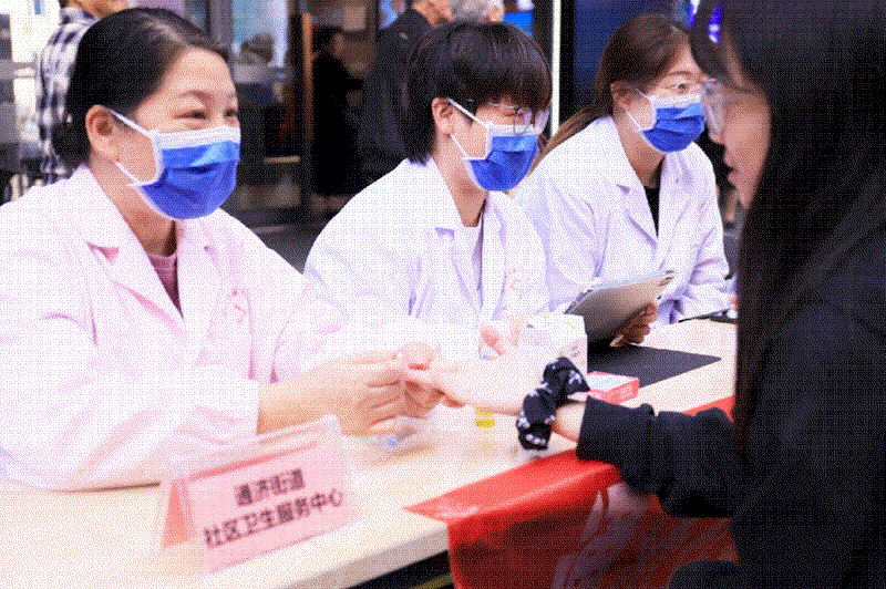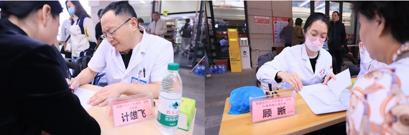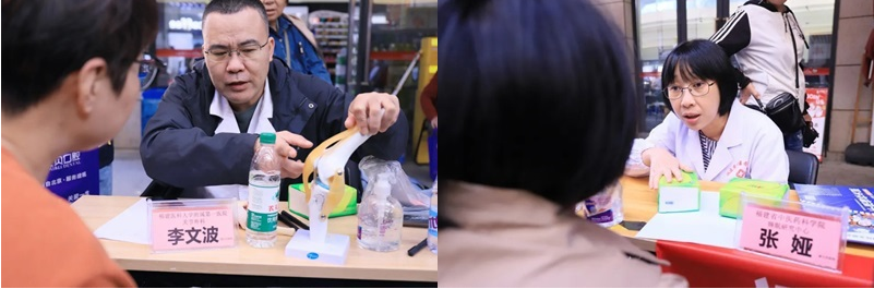 在义诊区,福建医科大学附属第一医院关节外科副主任医师李文波熟练地掏出了关节模具,边问询边科普。他发现一位居民存在小骨折,“您这里有个小骨折,别担心,不需要手术,只要佩戴合适护具,大约2到3周就能康复。”李文波一会手持模具,一会又抽出一张白纸戳穿模拟腰椎骨骼损伤,绘声绘色地为居民讲解疾病成因。现场排队咨询的老人们都笑着夸,“这个主任的科普明白好懂,真接地气”。