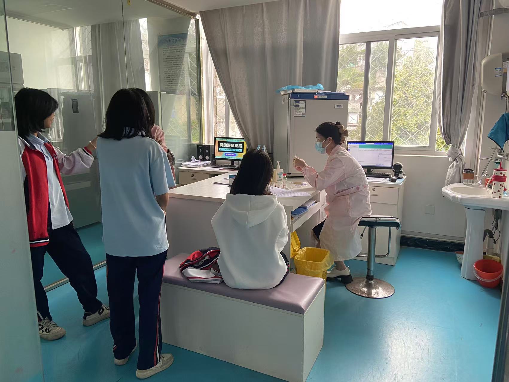 宫颈癌是世界范围内公认的威胁女性健康的主要“杀手”,是目前唯一病因明确、可防可控的癌症。接种HPV疫苗是预防宫颈癌的有效手段。目前接种的国产二价HPV疫苗,可有效预防HPV16和HPV18两个亚型的感染。 接种疫苗时,同学们有序排队逐一完成知情签字、健康询问、登记信息等接种疫苗前的各项流程。