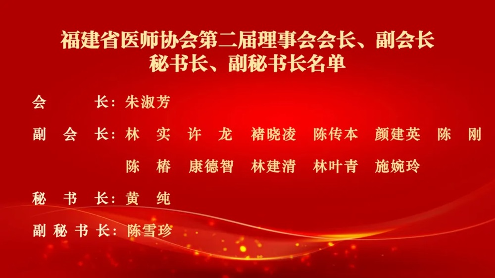 来自各设区市卫生健康委、平潭综合实验区社会事业局,省疾控中心、省卫生健康委各直属单位,福州大学、福建医科大学、福建中医药大学及其附属各医院,驻榕部队医院等单位的三百余名会员代表参加会议。朱淑芳当选福建省医师协会第二届理事会会长。
