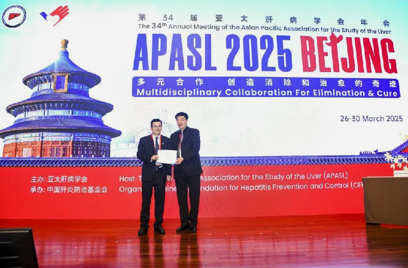 2025年3月26日,第34届亚太肝病学会年会(APASL 2025)在北京召开。受福建省卫健委、福建省疾控局委托,福建医科大学孟超肝胆医院院长曾永毅教授参加会议,并在会上汇报福建省乙型肝炎病毒感染者规范治疗项目实施成果,向全球肝病领域专家展示了中国在消除病毒性肝炎危害中的“福建智慧”。福建的经验与实践成为年会焦点,赢得了国际同行的高度赞誉。