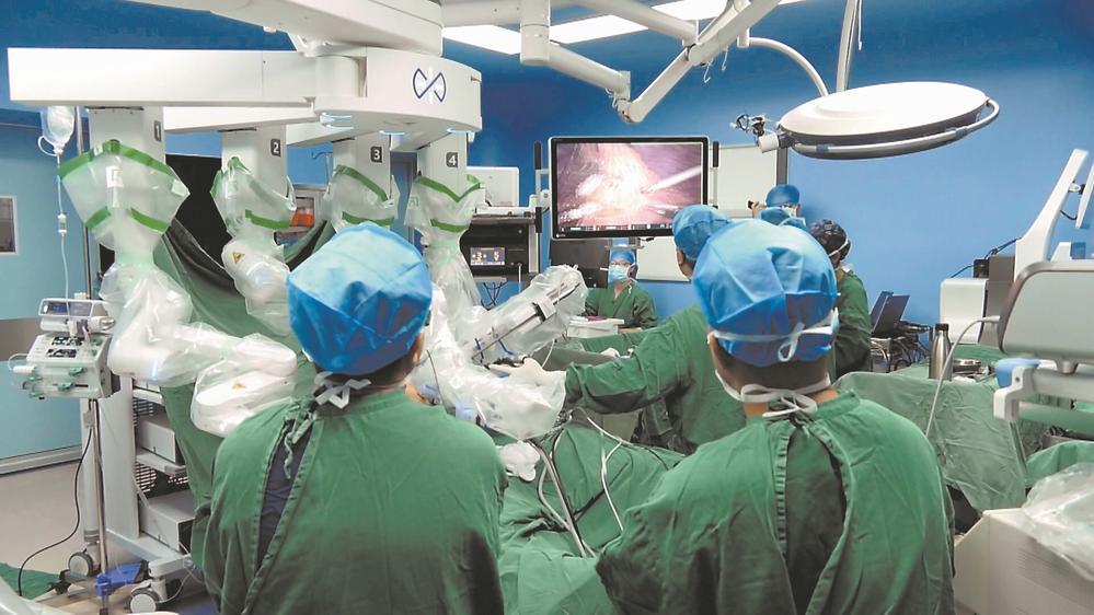 郑斌团队在为患者进行“经乳晕旁隐匿型微单孔肺结节切除术”。