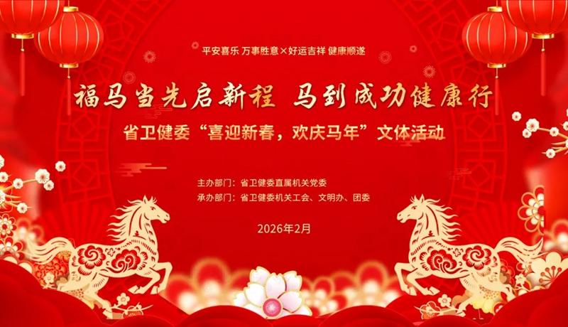 金马踏春,新程启幕。值丙午马年春节来临之际,为丰富省卫健委、省疾控局机关干部职工文化生活,厚植团结协作、实干争先的机关文化沃土,以文化建设赋能精神文明创建,推动模范机关建设向纵深发展,2月12日下午,省卫健委举办“福马当先启新程,马到成功健康行”——“喜迎新春,欢庆马年”文体活动。省卫健委党组成员、副主任张小舟出席并致辞,全体机关干部职工欢聚委机关大院,共迎马年新春。