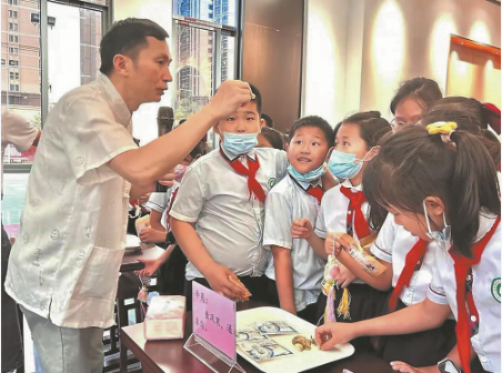 林汉钦进校园教孩子认识中草药、制作香囊。陈丽敏 摄