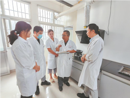 老药工林向前(右二)向徒弟传授中药炮制技术。李妙珠 摄