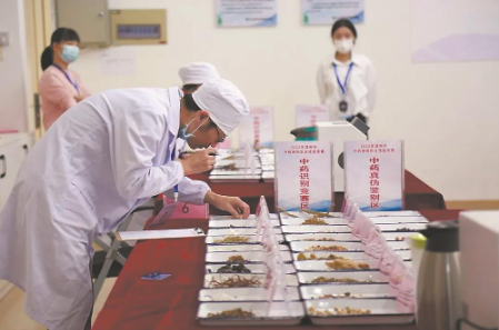 漳州市卫健委开展中药炮制职业技能竞赛。图为选手在鉴别中药真伪。(资料图片)